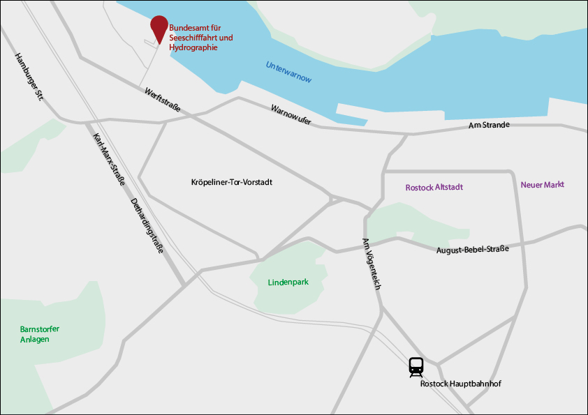- Fußweg vom Hauptbahnhof Rostock zum Bundesamt für Seeschifffahrt und Hydrographie